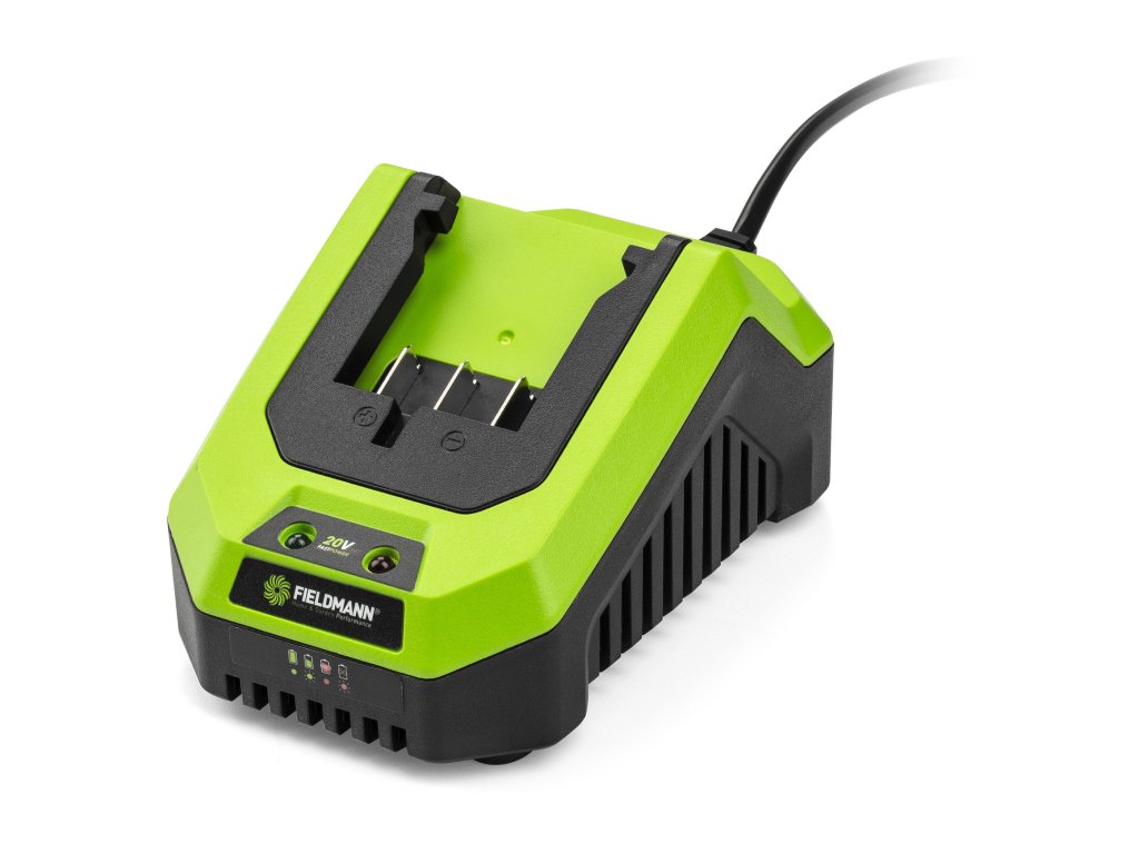 Rychlonabíječka FIELDMANN FDUZ 79100 je kompatibilní se všemi stroji z aku řady FAST POWER 20V. Díky LED indikátoru můžete sledovat stav nabití baterie. Nabíječka nabije 2Ah baterii za 60 minut.
