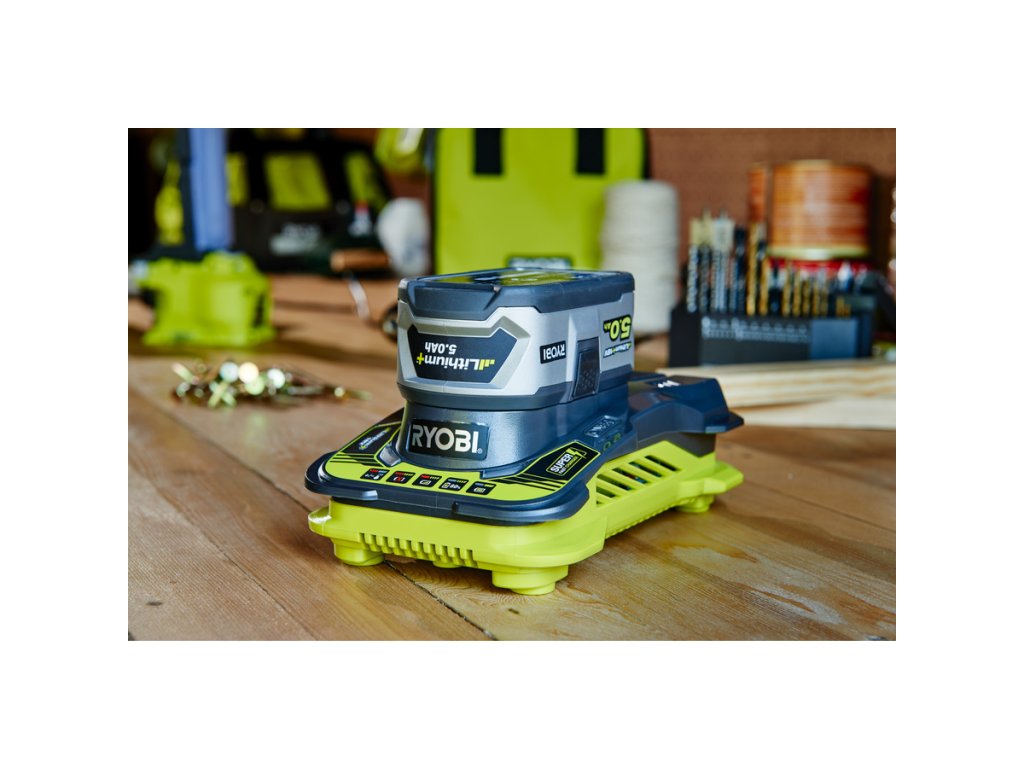 Rychlonabíječka RYOBI RC18-150 je kompatibilní se všemi 18V Lithium-iontovými akumulátory ONE+. Nabíječka nabíjí rychlostí 5.0 Amp/h, což znamená, že 5.0 Ah akumulátor nabije za 1 hodinu. Indikátor zobrazuje stav akumulátoru při nabíjení a udržování. Inteligentní sledování podmínek vyhodnocuje napětí a teplotu akumulátoru při nabíjení, a zajišťuje tak dlouhodobou životnost.