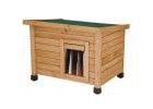 Bouda pro psa z lakovaného dřeva v šedo-bílé barvě, bitumenová střecha, lamelový závěs...