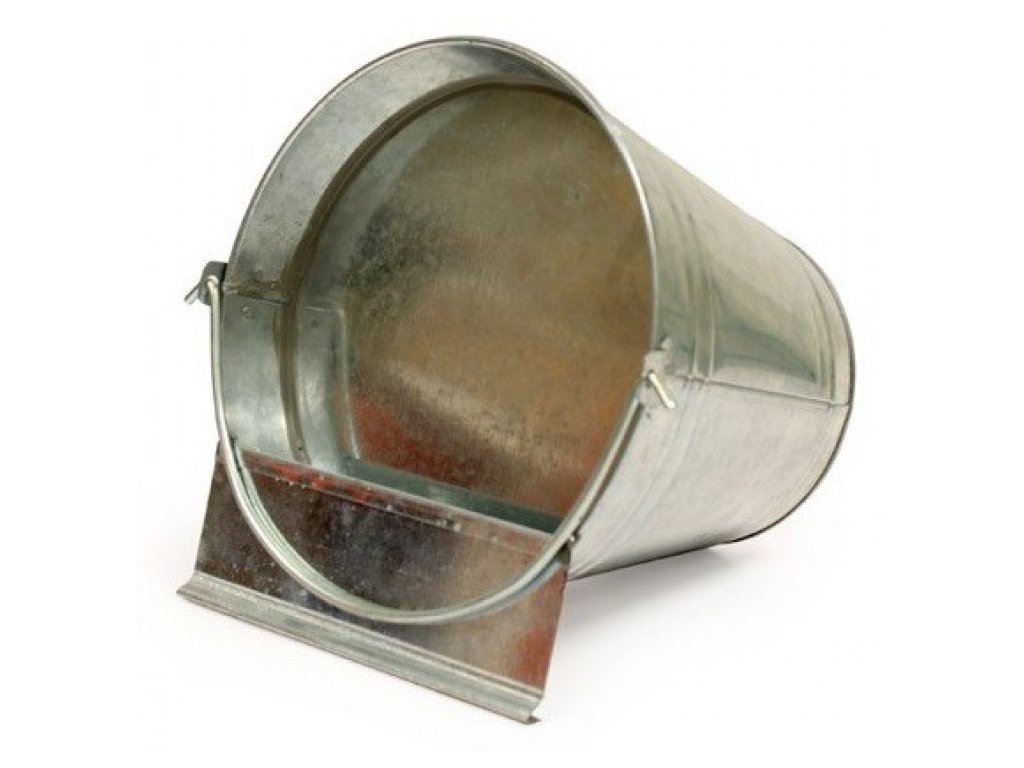 Kovová kbelíková napáječka o objemu 6 litrů.