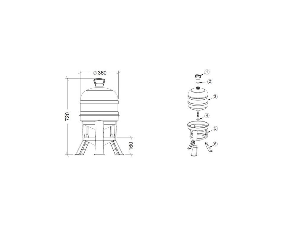 - Stabilní a Odolná Konstrukce:Napáječka je vyrobena z pevného plastu s nožičkami o výšce 160 mm, což zajišťuje stabilitu a odolnost vůči poškození.