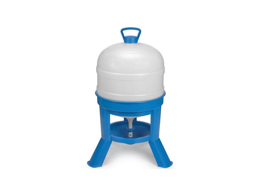 Plastová napáječka od výrobceGAUN. Sobjemem 30 litrů arozměry zásobníku 360 mm v průměru a 725 mm na výšku je tato napáječkavhodná až pro 80 slepic. Je navržena tak, aby vyhovovala potřebám všech druhů dospělé drůbeže.