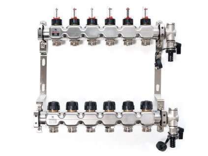 Nerezové podlahové rozdělovače jsou nezbytnou součástí pro podlahové vytápění, zajišťující rovnoměrné rozdělení tepla do jednotlivých okruhů. Každý rozdělovač je testován při tlakové zkoušce a vybaven průtokoměry a ventily pro přesnou regulaci teploty. Nabízíme i mosazné a radiátorové rozdělovače.