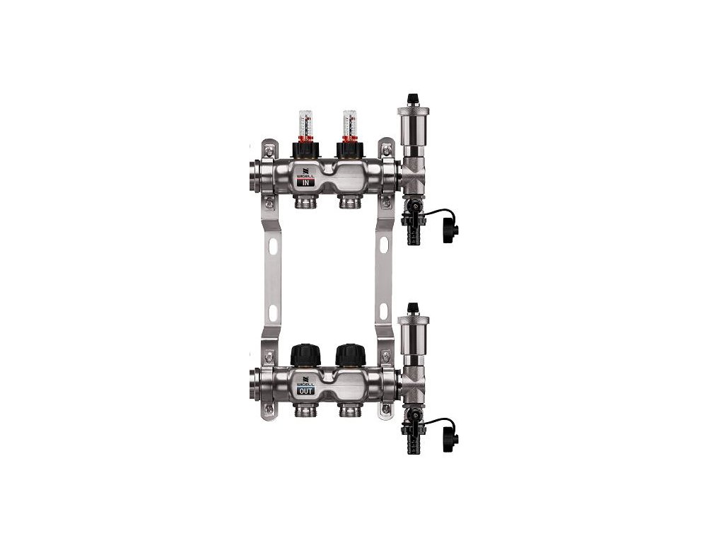 Podlahový rozdělovač WIGELL, 2 okruhy, nerez + automatické odvzdušňování