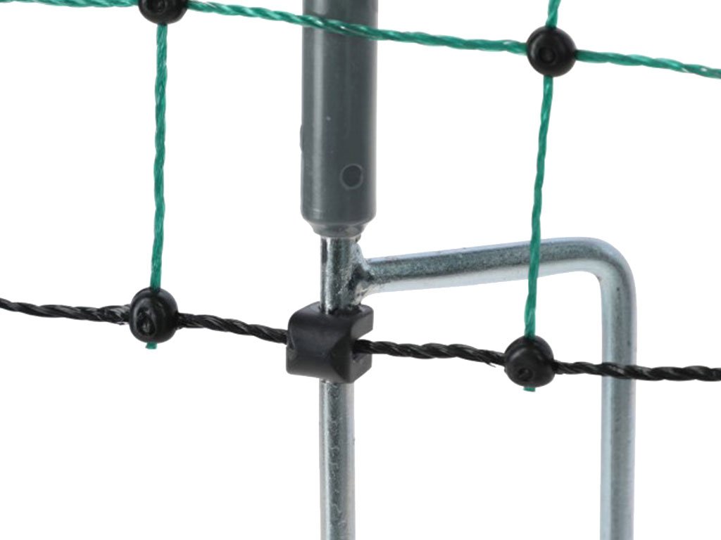 (bateriový zdroj ani zemnící tyč není součástí balení) - K jednoduchému průchodu do výběhu můžete k síti zakoupit také bránu k síti.