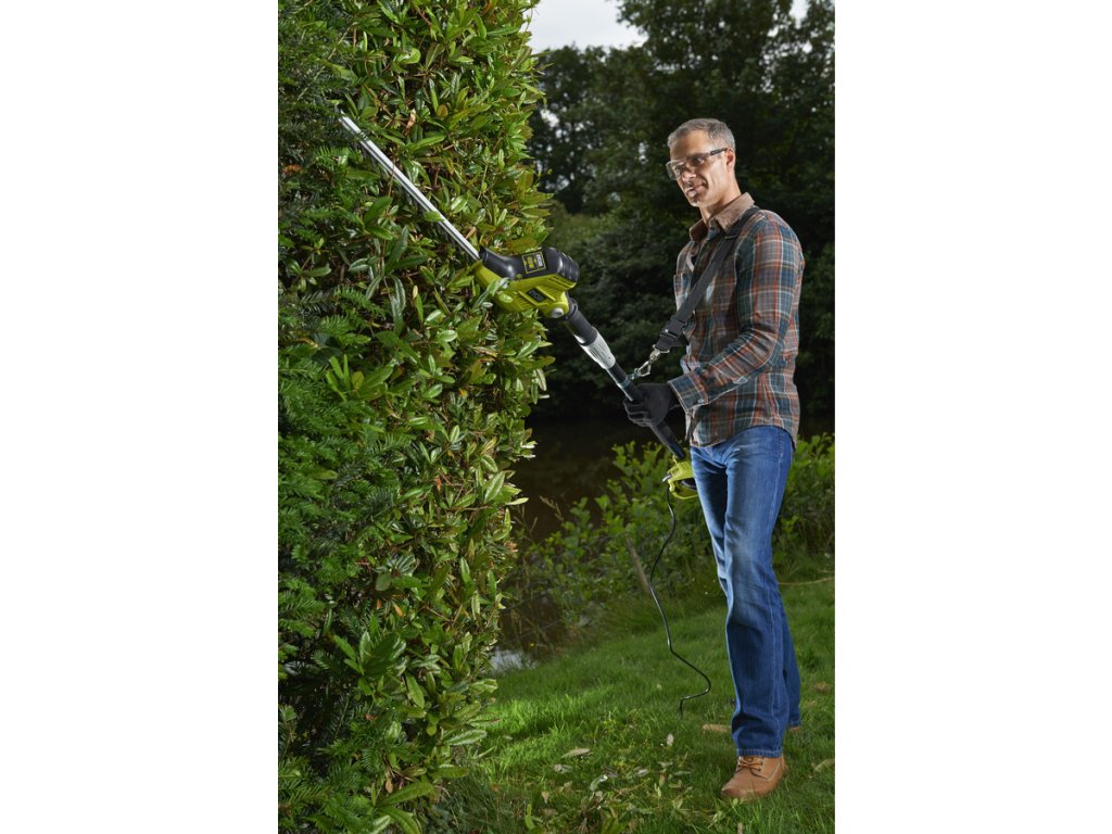 Elektrický teleskopický plotostřih na živý plot RYOBI RPT4545E, 450 W s otočnou rukojetí je ideální pomocník pro úpravu živých plotů, okrasných stromků a keřů, který vám pomůže udržet váš plot krásný a zdravý, bez nutnosti použít žebřík i u vysokých plotů.