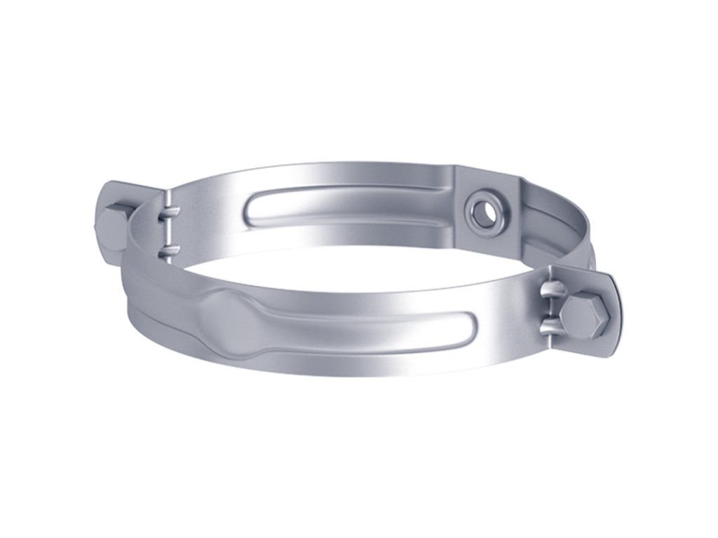Pozinkovaná objímka svodu 80 mm vyrobená z kvalitního plechu je vhodný pro okapový systém 250 / 80 mm, disponuje odolností vůči mechanickému poškození, povětrnostním vlivům i korozi a slouží k pevnému přichycení svodu ke zdi