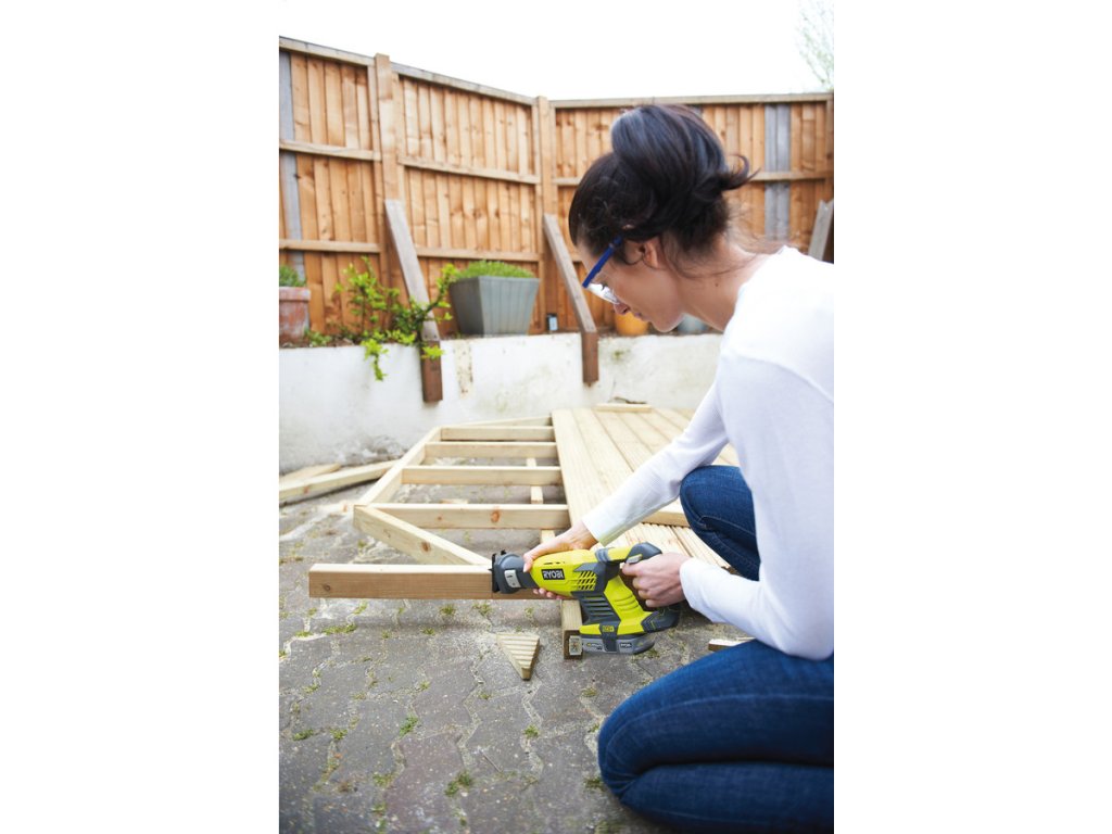 Pila spadá do řady One Plus ™, kdy jednu baterii můžete umístit do nástrojů, které využijete v dílně — brusky, vrtačky či přímočaré pily, ale také do vašeho zahradního nářadí — sekaček, plotostřihů či foukačů na listí.