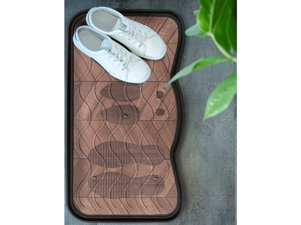 Odkapávač na boty Printed Footprints Wood 38cm x 75cm
