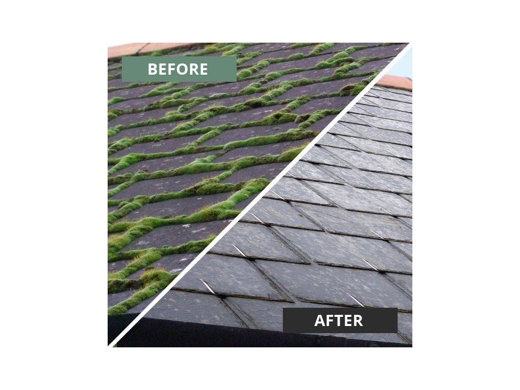 - Odumřelý mech se během následujících týdnů rozpadne nebo ho lze snadno odstranit mechanicky (např. smetením nebo opláchnutím vodou)