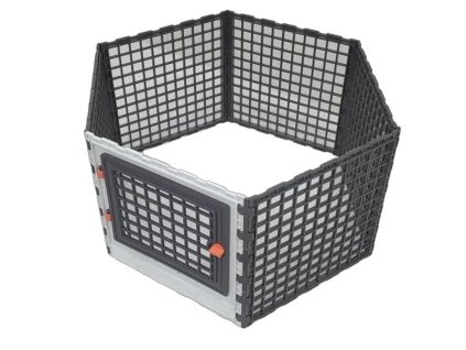 - Modulární systém: Balení obsahuje 8 dílců o velikosti 40 x 40 cm + 1 dílec s dvířky, což umožňuje snadné sestavení a přizpůsobení tvaru i velikosti výběhu.