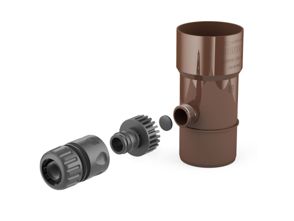 Plastový sběrač dešťové vody PVC 90 mm je určený pro okapový systém 125 / 90 mm, přičemž jeho hlavní funkcí je sběr dešťové vody do sudu a v případě, že se sud zcela zaplní, začne voda přetékat do svodu.