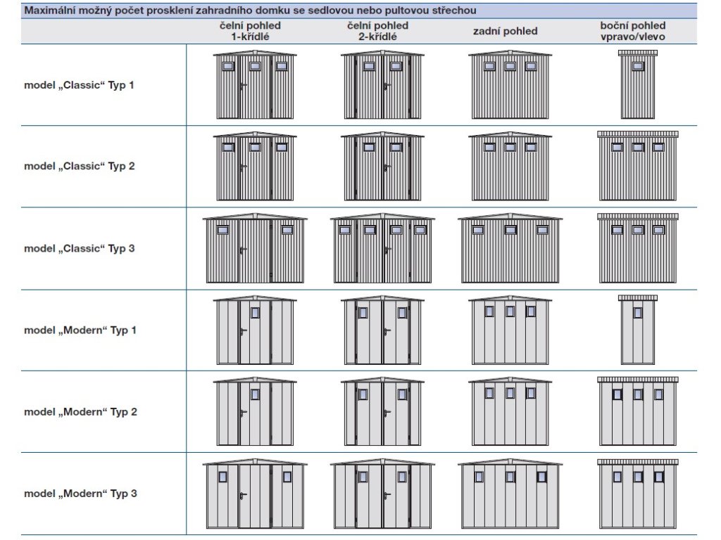 V následující tabulce najdete maximální počet oken pro jednotlivé modely zahradních domků Hörmann. Díky našemu jedinečnému systému přidávání oken si můžete být jisti, že si vytvoříte ideální prostor pro vaše potřeby.