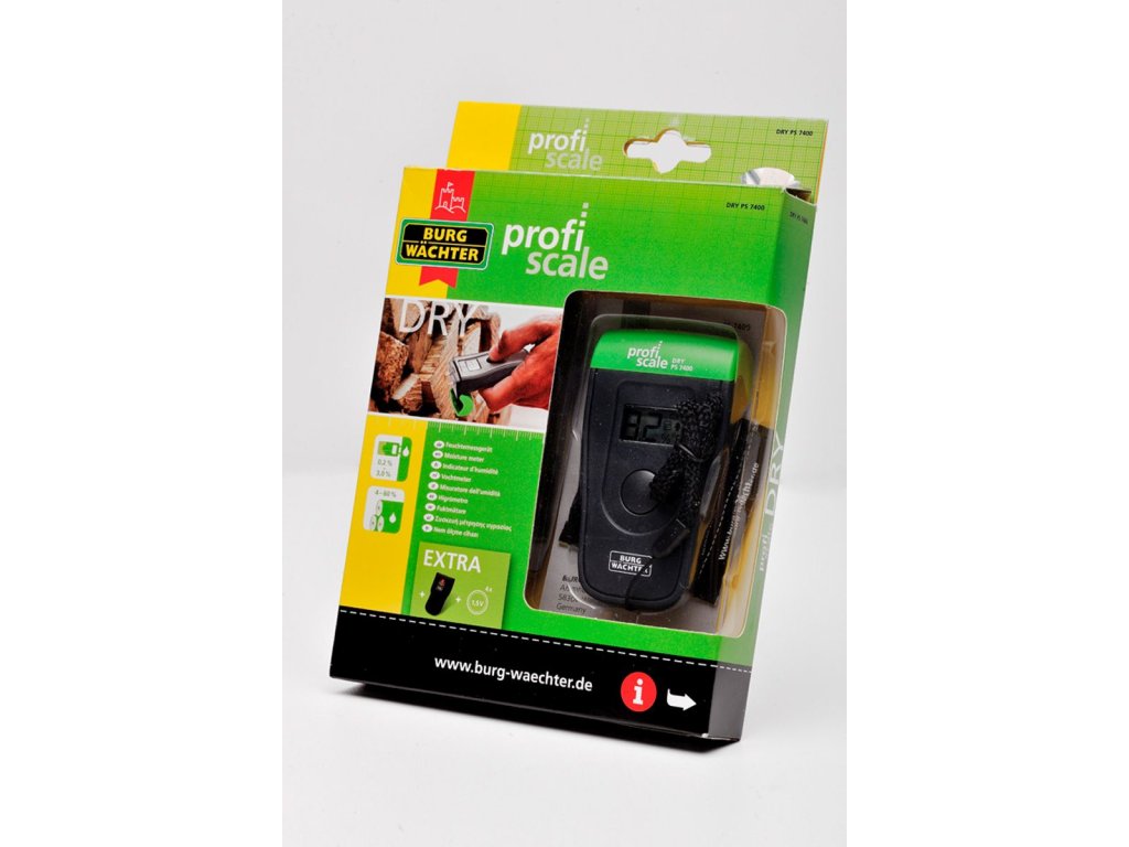 Vlhkoměr určený k měření vlhkosti dřeva nebo vlhkosti zdiva. Součástí balení jsou 4 baterie LR44 a ochranný obal na vlhkoměr.