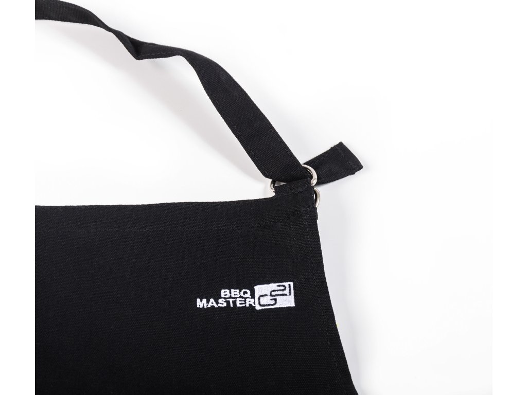 Grilovací zástěra s dvěma kapsami z pevné 100% bavlny v praktické černé barvě chrání vaše oblečení před ušpiněním při grilování. Bavlněná grilovací zástěra se zavazováním za krkem a v pase, takže ji může použít kdokoliv, drobná žena i velký šéf grilu. Do dvou velkých kapes na přední straně zástěry uložíte vše, co nechcete nikam odkládat, ale co zároveň potřebujete mít při ruce.