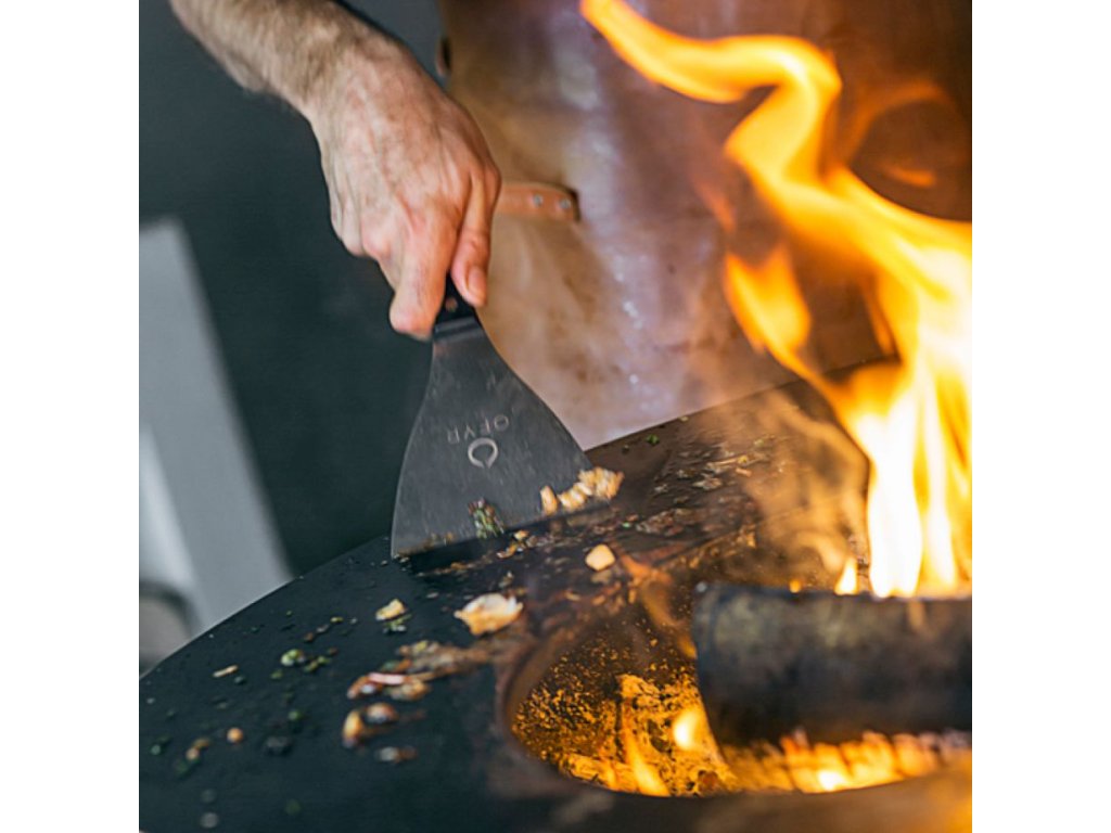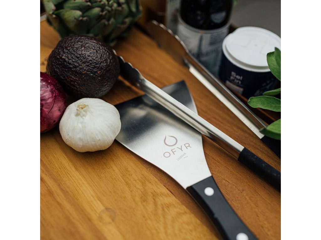 Díky rukojeti z termoplastu pro optimální úchop a čepeli z nerezové oceli s ostrou hranou pro snadné otáčení pokrmů je špachtle OFYR Spatula PRO nezbytnou pomůckou pro venkovní vaření.