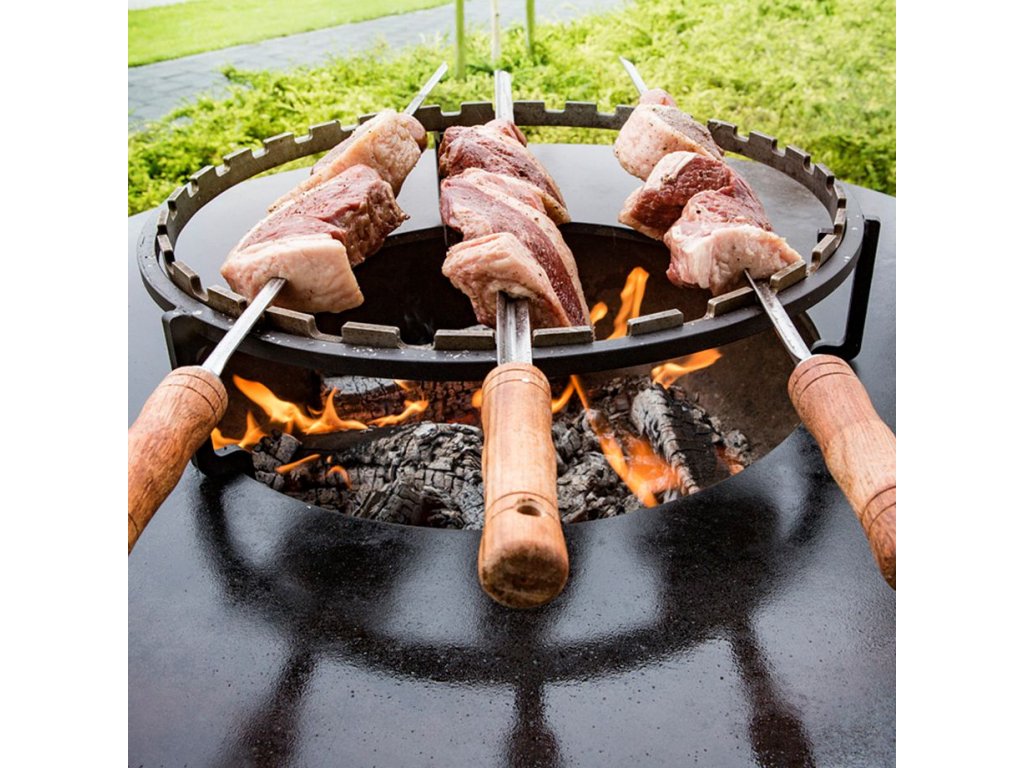 Díky tomuto cimbuří získáte stabilní podporu pro špízy, což vám umožní dosáhnout rovnoměrného a dokonalého grilování každým použitím. Samostatný kruh pro gril OFYR 85 je také součástí sady příslušenství ke grilu Grill Round 85. S tímto příslušenstvím můžete rozšířit možnosti vašeho grilování a připravit širokou škálu lahodných pokrmů pro sebe, rodinu a přátele. Pomocí tohoto kruhu můžete ke svému grilu Round 85 přidat horizontální špízy. Špízy jsou blíže k ohni než u sady Horizontal Skewers Set 100 a mohou se tak rychleji připálit.