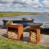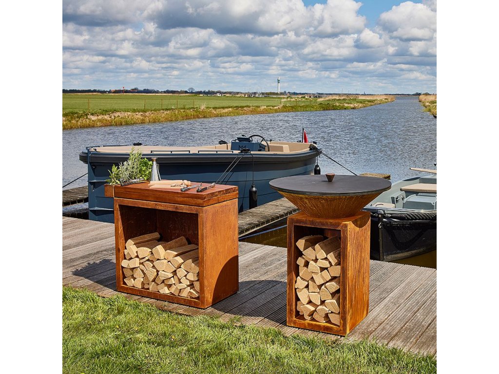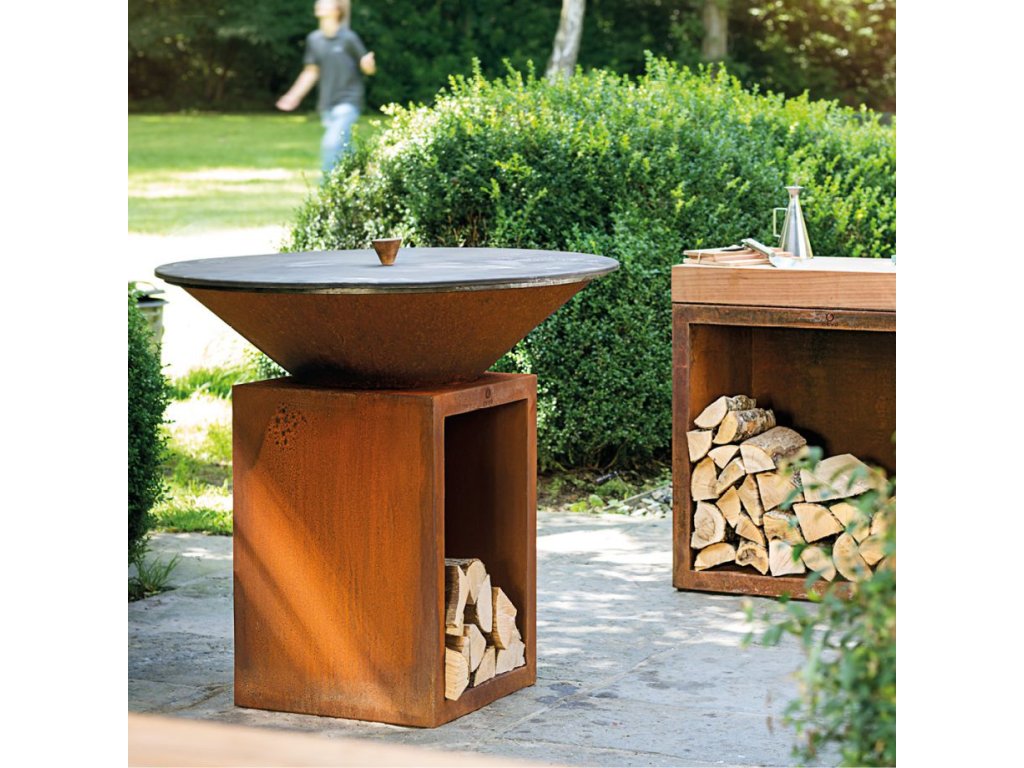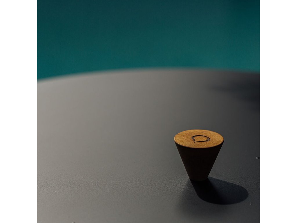 Poklop OFYR Cover 85 je vyroben z černé práškované oceli s mahagonovým madlem a slouží k zakrytí plotny a kužele vašeho grilu OFYR, když se právě nepoužívá.