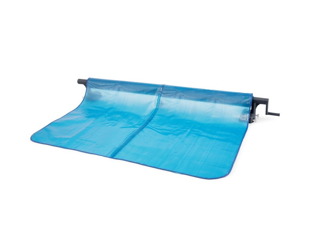 Rolovací naviják na solární plachtu vhodný pro obdélníkové bazény o šířce kratší bazénové stěny 274 - 488 cm. Naviják se jednoduše připevní na kovový rám bazénu. Díky nastavitelné šířce se přizpůsobí velikosti bazénu. Naviják disponuje pojistným mechanizmem proti samovolnému rolování plachty.