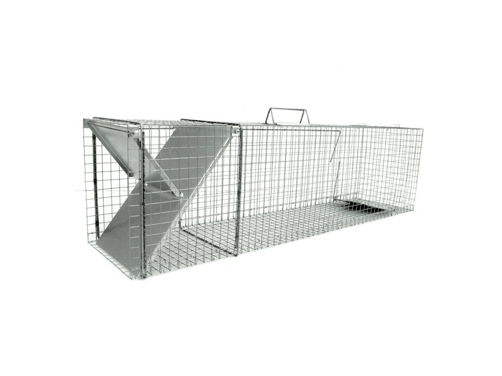 Velká odolná past santikorozní úpravou, vybavená jedním vstupem a bezpečným uzavíracím mechanismem. Tato konstrukčně pevná past má drát o tloušťce 1,8 mm a funguje na principu„mostového“ uzavření, které účinně zachytí zvěř uvnitř.