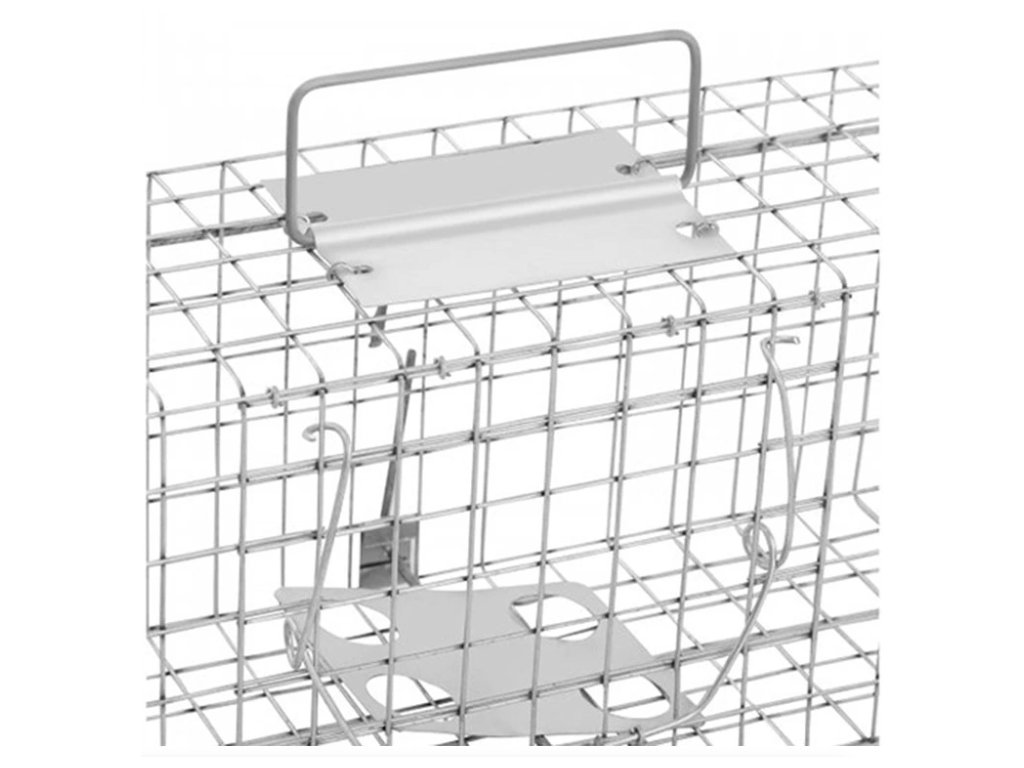Tento sklopec je vyroben z drátu o tloušťce 1,8 mm s velikostí ok 25x25 mm, což zajišťuje pevnost a brání úniku i velmi mrštným zvířatům. Celá konstrukce je pozinkovaná, čímž je chráněna proti korozi a připravena pro dlouhodobé nasazení v domácnostech, skladech i hospodářských budovách. O bezpečné uzavření se stará mostový uzamykací systém, který reaguje okamžitě po sešlápnutí středové nášlapné plochy.