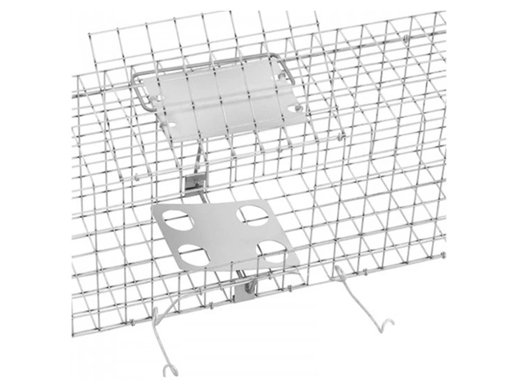 Pro pohodlné umístění návnady disponuje past praktickými bočními dvířky, která umožňují přístup přímo k nášlapnému mechanismu. Ten je vybaven otvory pro stabilní uložení vajec. Při manipulaci se sklopcem doporučujeme vždy používat ochranné rukavice, abyste eliminovali varovný lidský pach. Pro bezpečnou přepravu odchyceného zvířete je klec osazena přepravními madly s ochranným štítem.