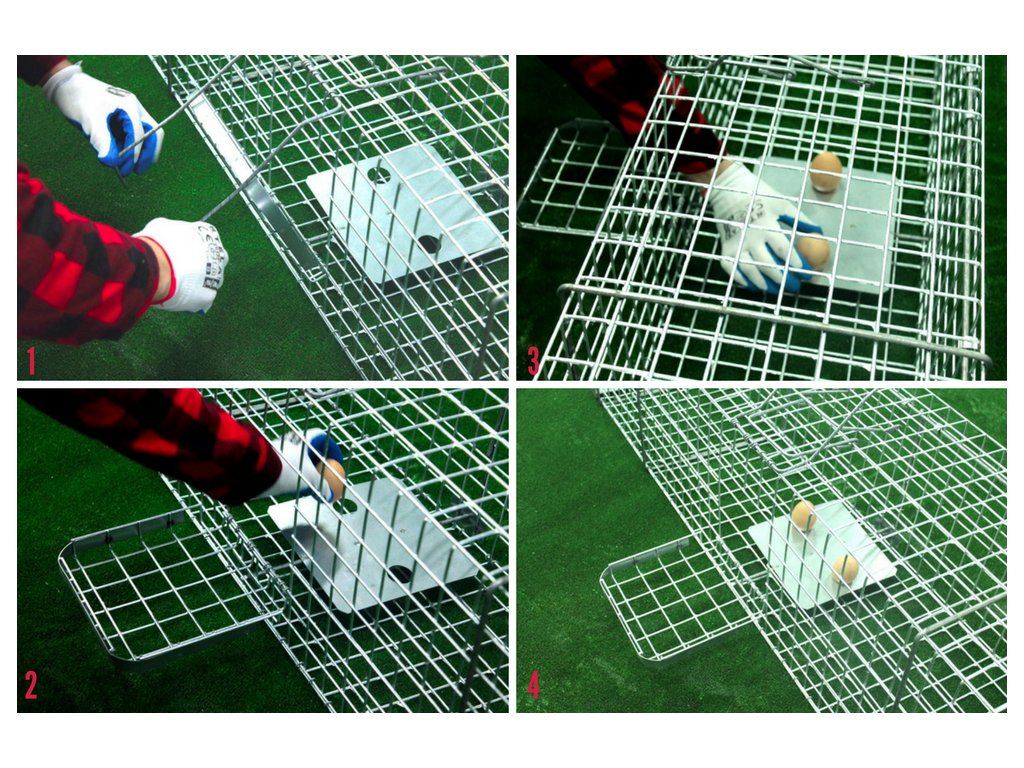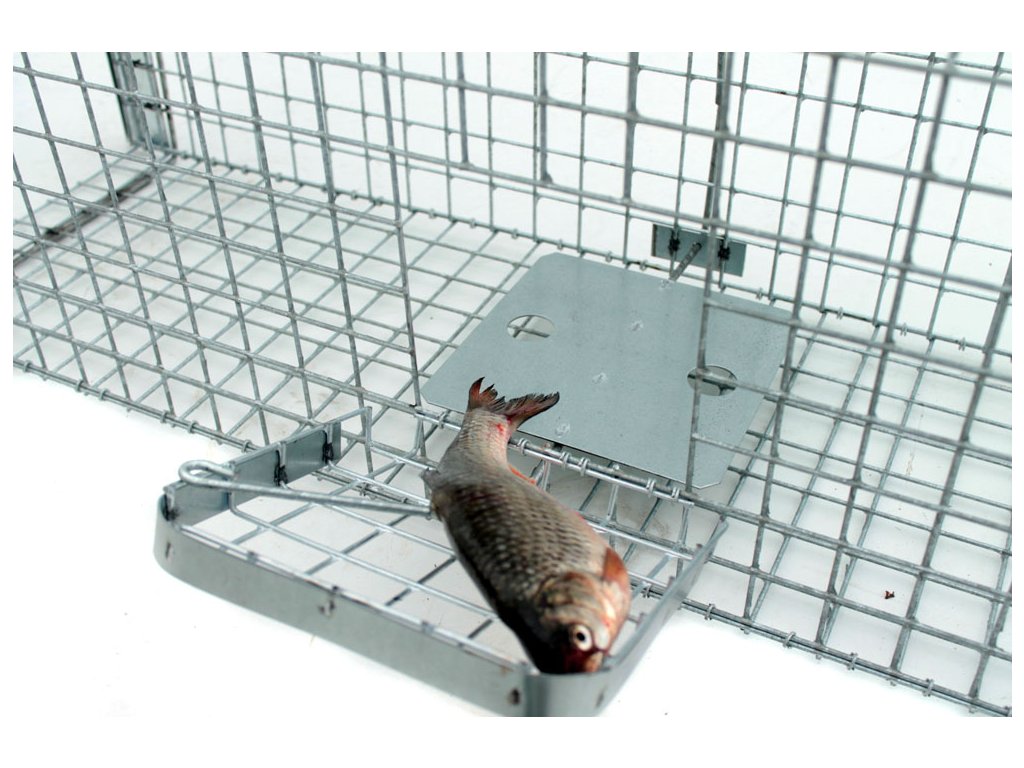 Návnada se umisťuje do středu pasti, kde je pro zvíře nejpřitažlivější. Vkládání je díky masivním bočním dvířkám pohodlné a zároveň bezpečné. Pomocí nášlapného mechanismu lze nástrahu, například vejce, pevně zafixovat do připravených otvorů, čímž se zvyšuje šance na úspěšný odchyt.
