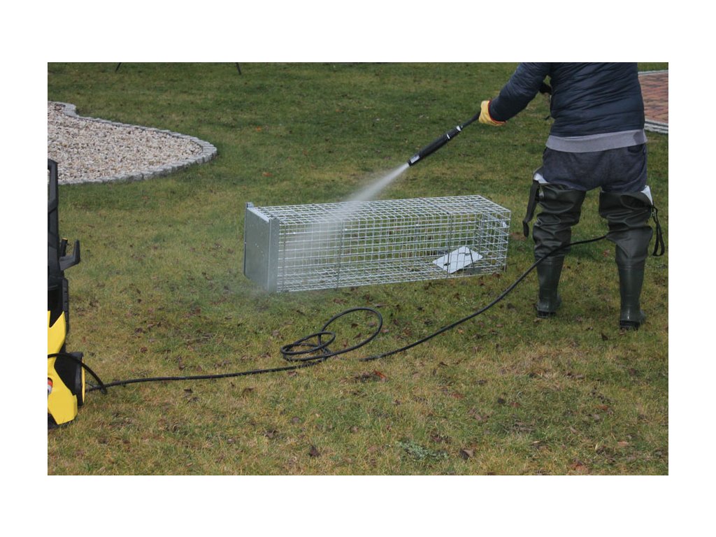 Robustní jednostranná odchytová past s precizním zpracováním je navržena pro účinný a bezpečný odchyt kun, koček, menších psů, vyder, bobrů či lišek. Konstrukce je tvořena pevnou pozinkovanou ocelí s drátem o průměru 3,0 mm, který je nejen vysoce odolný vůči mechanickému poškození, ale také chráněný proti korozi, což umožňuje dlouhodobé použití za jakéhokoliv počasí – na suchu i ve vodě. Díky padacímu systému zavírání, který se aktivuje pohybem zvířete, dochází ke spolehlivému a okamžitému uzavření pasti bez možnosti úniku. Past je dostatečně prostorná a umožňuje bezpečné a humánní zachycení i větších druhů škodné zvěře.