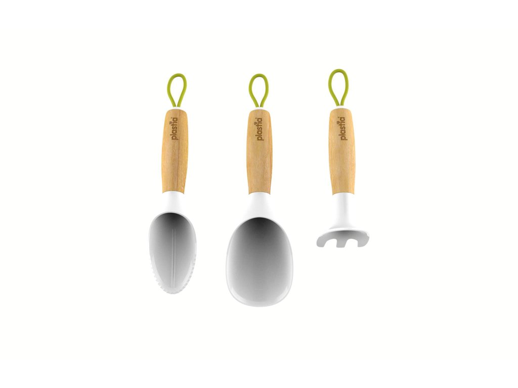 Nástroje o výšce 23 cm pro kultivaci, sázení, přesazování, i šetřování rostlin v zahradě i na balkoně. Rýček se sázecí drážkou využijete při výsadbě semínek do záhonů, lopatku při přesazování či výsadbě rostlin, hrabičky pak pro provzdušnění půdy v květináčích či úpravě záhonů.