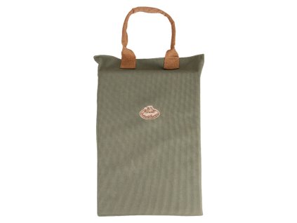 Umělohmotný skládací koš na listí a další zahradní odpad se třemi držadly.