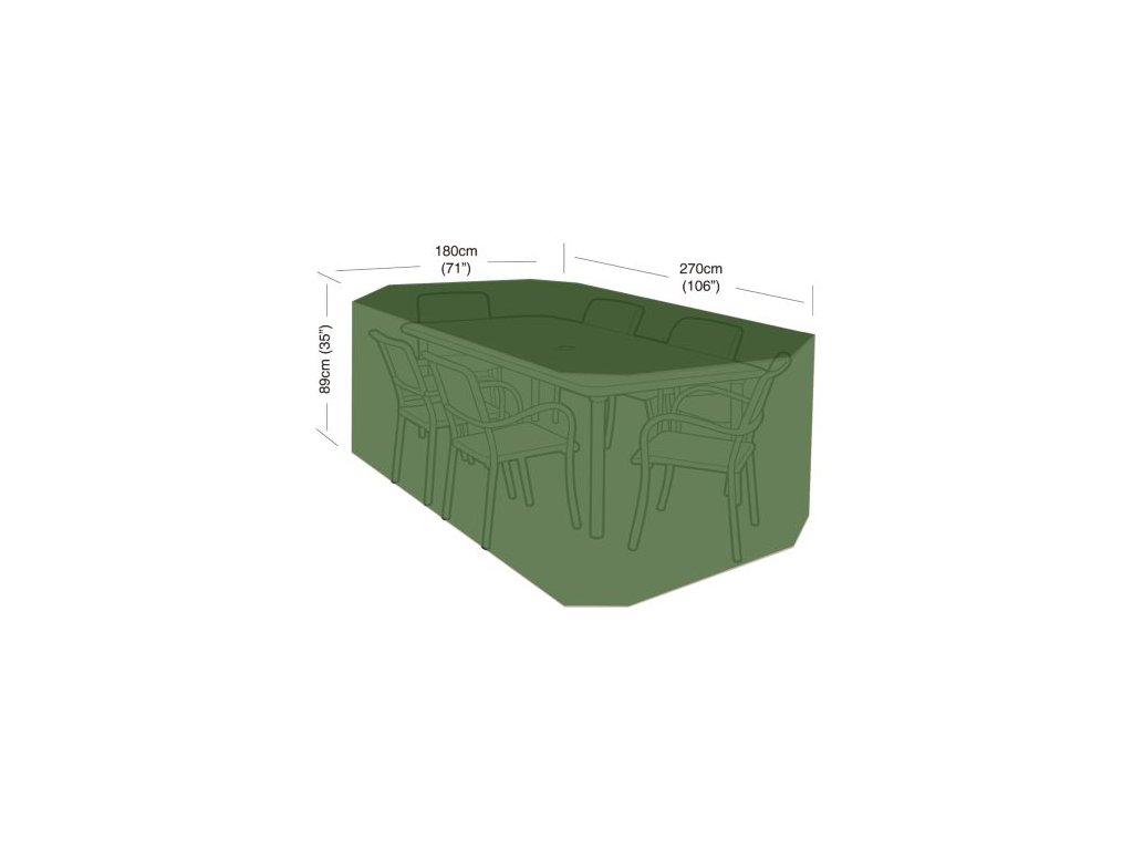 Krycí plachta na set 6 židlí a obdélníkového stolu o rozměru 270 x 180 x 89 cm v zelené barvě je vyrobena z polyethylenu. Tato plachta slouží pro dlouhodobé zakrytí, zároveň chrání před deštěm, větrem, sluncem a prachem.