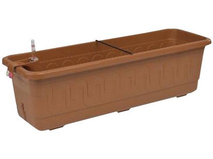 pravidelný přísun zálivky zajistí 6 dutin a 3 knoty, přepadové otvory v truhlíku...
