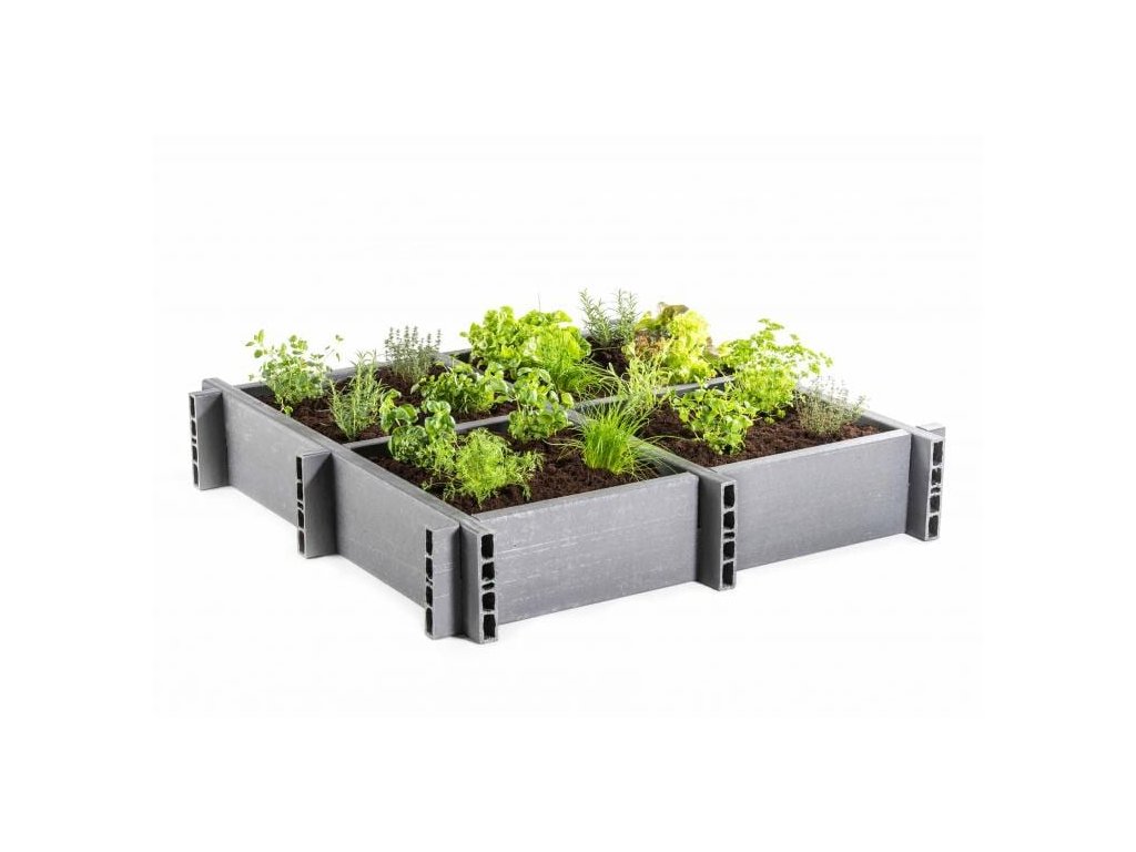 Jeden metr čtvereční stačí k vytvoření vlastní ekologické zahrádky, ale pokud chcete osázet větší plochu, můžete kombinovat i několik záhonů současně. Zahradní záhon na rostliny Ecoo se skládá ze čtyř přihrádek, které si snadno poskládáte sami.
