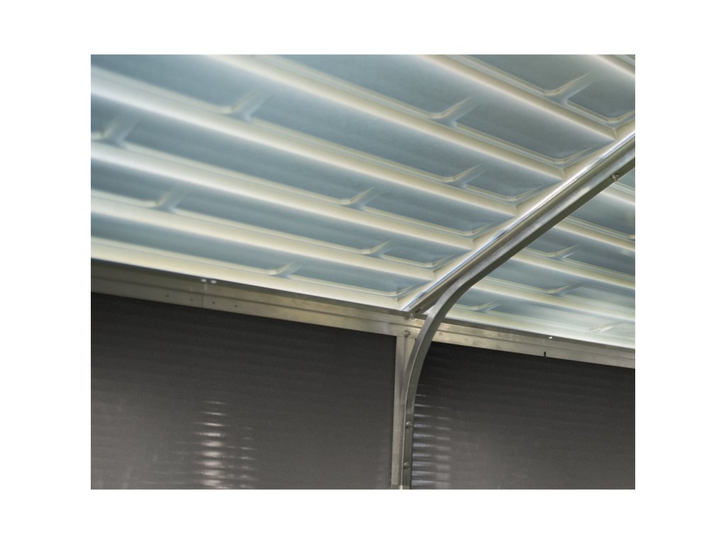 Unikátní polykarbonátová střecha propouští 10 % světla, což příjemně prosvětluje interiér, aniž by docházelo k přehřívání. Střecha je navržena tak, aby odolala sněhovému zatížení až 80 kg/m² a větru o rychlosti až 105 km/h. Integrované okapy zajistí efektivní odvod dešťové vody.
