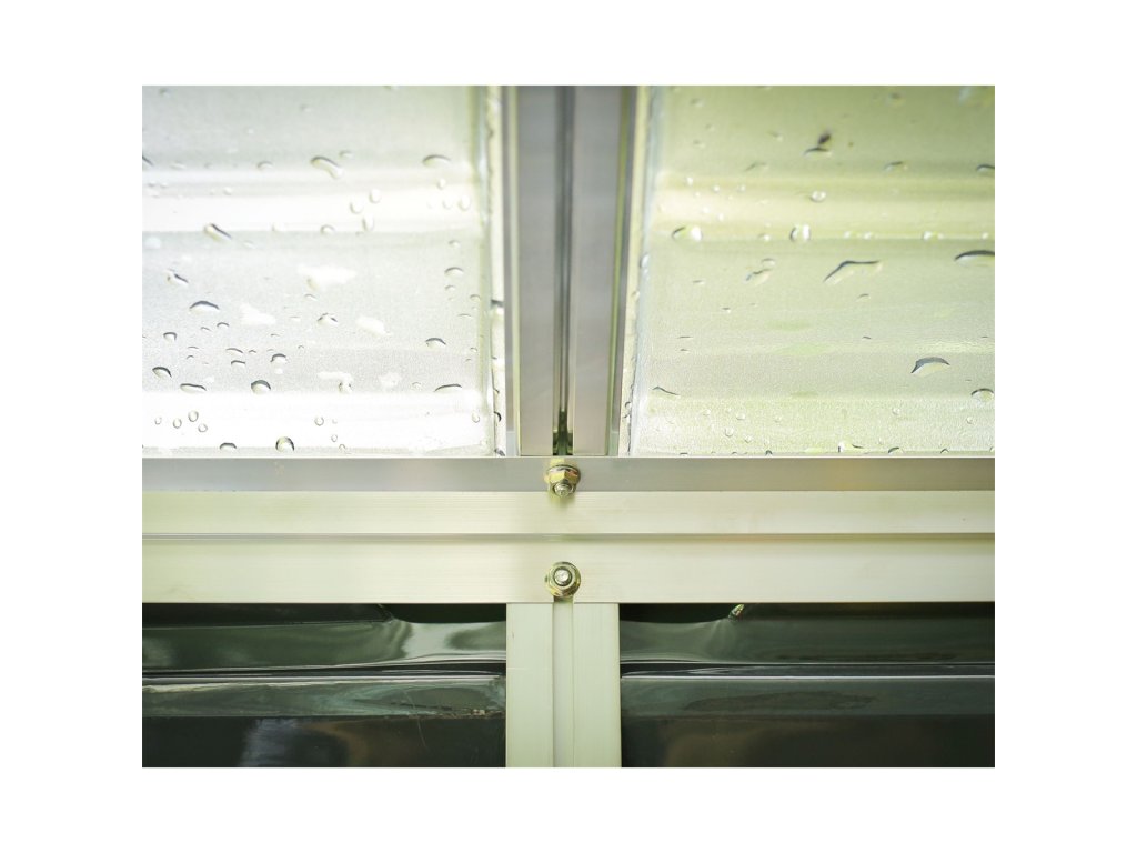 Domek Skylight 4x6 je vyroben z vysoce odolných polykarbonátových panelů, které jsou prakticky nerozbitné a chráněné proti UV záření. Tyto panely nekřehnou, nemění barvu a zajišťují maximální ochranu před změnami teplot, přívaly sněhu nebo krupobitím. Konstrukce je zpevněna robustním hliníkovým rámem, který nepodléhá korozi, a poskytuje tak domku mimořádnou stabilitu a dlouhou životnost.