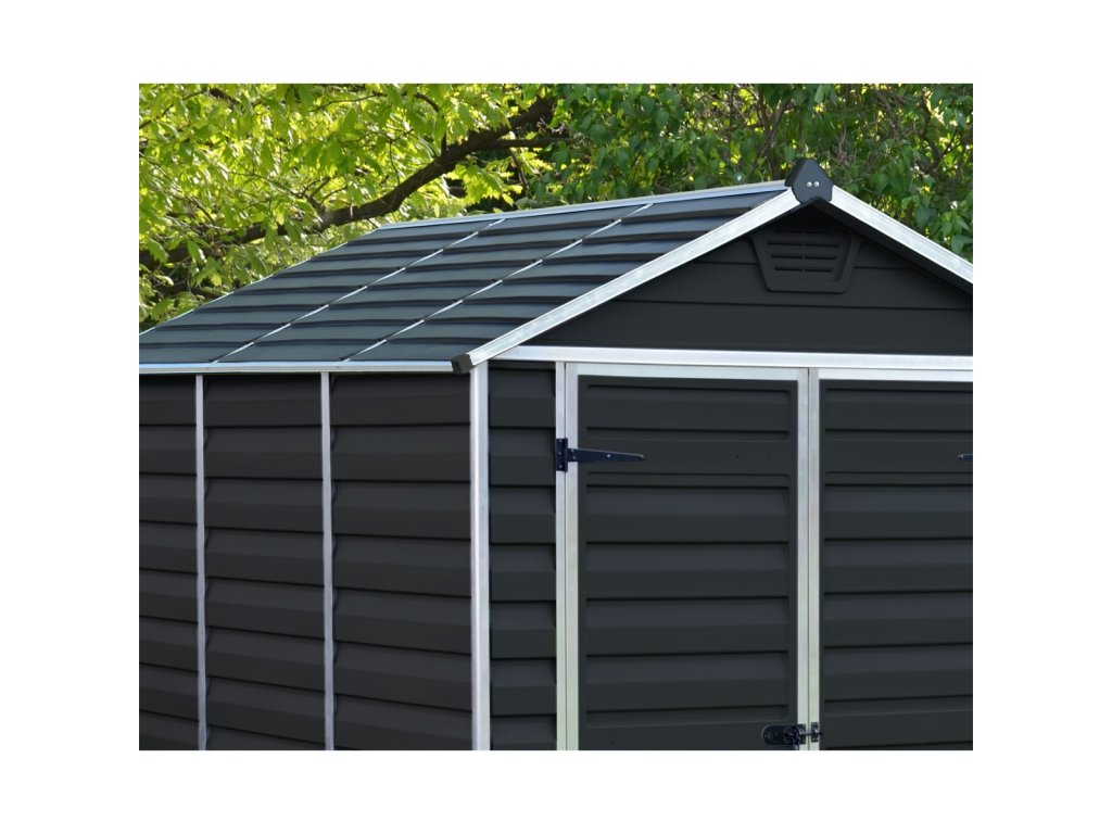 Pořiďte si špičkový zahradní domek PALRAM Skylight 4x6 v moderní antracitové barvě, který nabízí bezpečné a elegantní řešení pro uskladnění zahradního náčiní, sportovního vybavení, grilovacích potřeb nebo zahradního nábytku. Díky kvalitním materiálům a promyšlenému designu se domek stane odolným a stylovým doplňkem vaší zahrady. Zahradní domek je díky svým vlastnostem dokonalým řešením pro každého, kdo hledá stylové, odolné a snadno udržovatelné úložné místo.