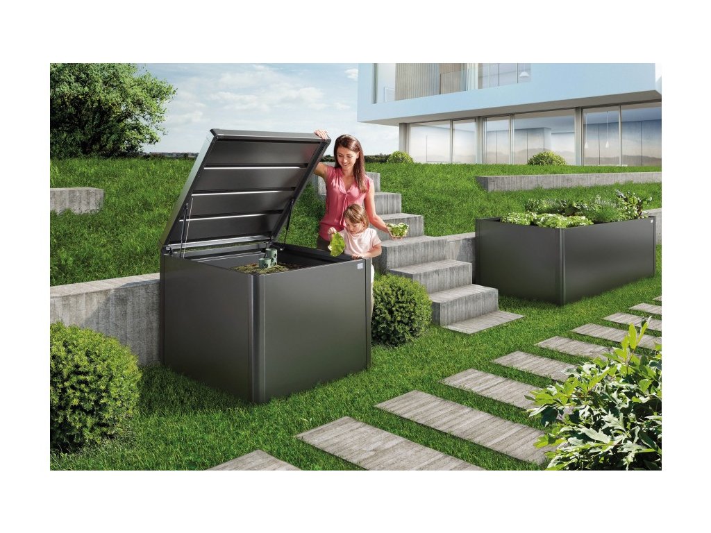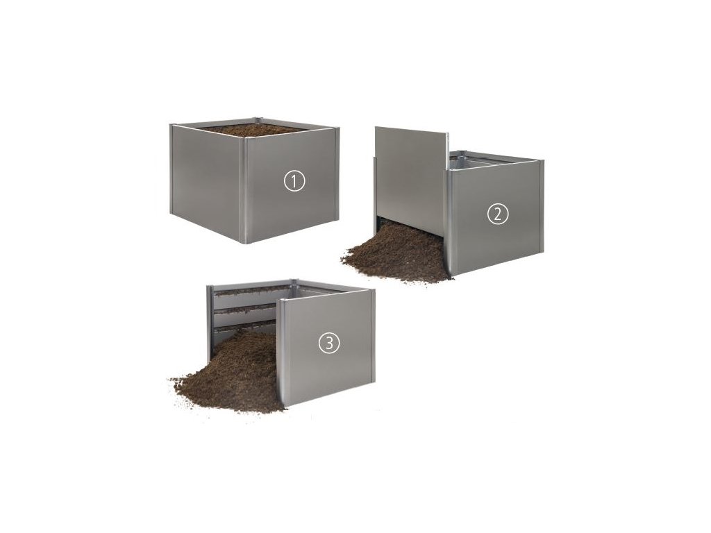 Žárově pozinkovaný plech s polyamidovým smaltovaným povrchem, má sametový nádech a opticky přesvědčí čistou elegancí. Díky tomu je kompostér MonAmi atraktivním designovým prvkem pro každou zahradu.