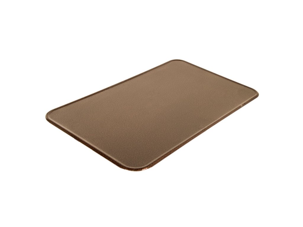 Plech pod kamna v barvě staré mědi o rozměru 80 x 50 cm ochraňuje podlahu od tepla a zároveň také chrání podlahu před poškozením váhou kamen.