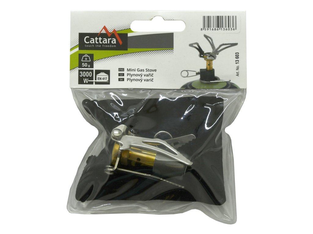 - Plynový vařič Cattara MINI je tvořený kovovou nerezavějící konstrukcí