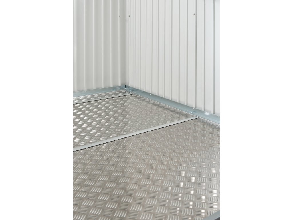 Hliníková podlahová deska pro ocelový dřevník Woodstock 300. Rozměr desky je 285,5 x 69,5 x 0,2 cm a skládá se z 2 mm hliníkového žebrovaného plechu.