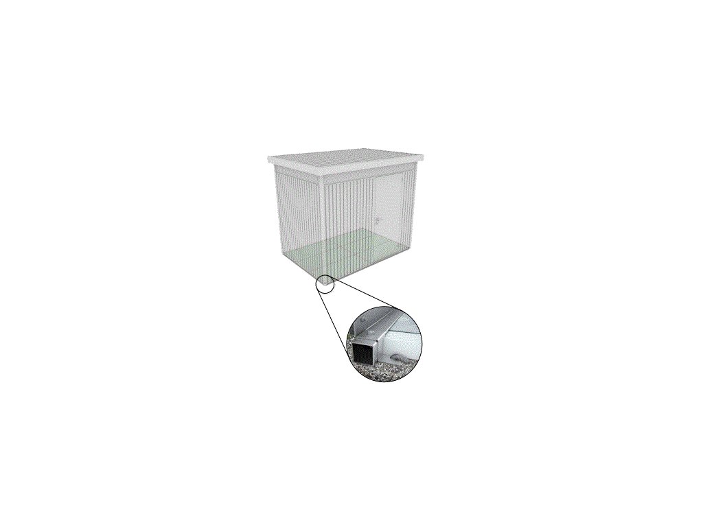 Hliníková podlahová deska je vyrobena z 2 mm hliníkového žebrovaného plechu, který je podle velikosti domku tvořen 3 – 5 segmenty včetně spojovacích profilů; pro optimální položení je potřebný hliníkový podlahový rám Biohort, který není součástí balení.