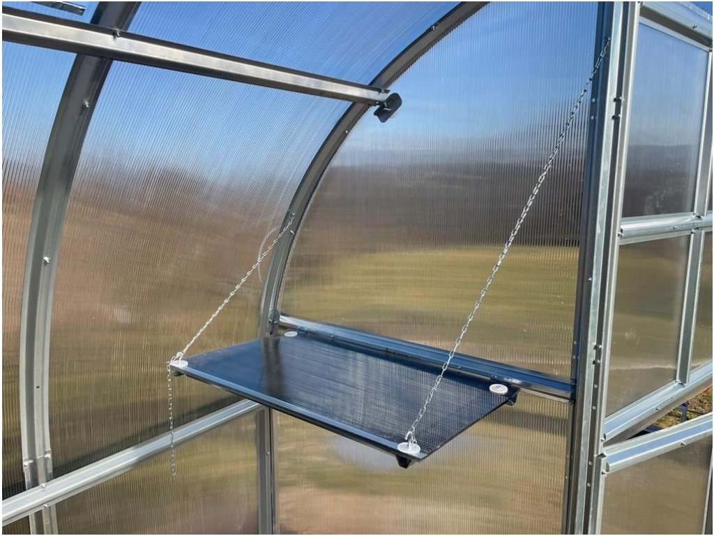 Oceňuji možnost ke skleníku Gardentec přikoupit tuhle originální poličku. Dělá nám ve skleníku parádu.