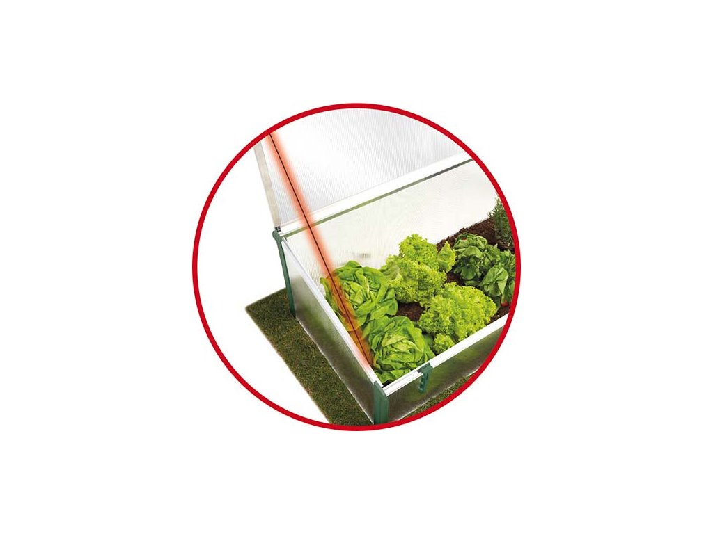 Základní model dvojitého pařeniště JUWEL EASY FIX 120/100. Pařeniště je průběžně větráno skrze dvě otevíratelná okna. Polykarbonátové okno lze zajistit ve 4 polohách + v plně otevřeném stavu.