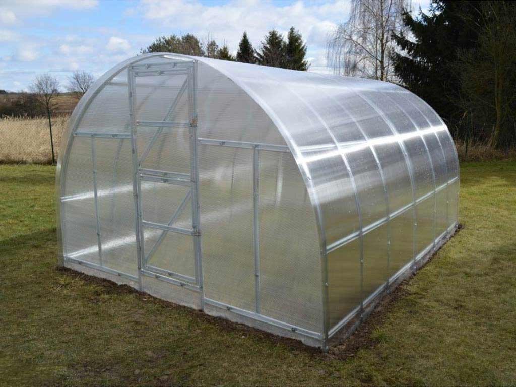 Skleník Kyklop je vyroben z masivních žárově zinkovaných profilů síly 0,70 - 0,85 mm. Jednotlivá žebra nosných oblouků jsou od sebe vzdálena pouhých 60 - 80 cm. Přední a zadní čela skleníku mají vestavěné dvojité dveře, takže skleníkem je možné procházet z obou stran. Pokud otevřete horní část dveří na obou koncích skleníku, zajistíte tím pohodlné větrání celého sklenku, aniž by do něj měly přístup děti nebo domácí zvířata. V případě, že nechcete montovat druhé dveře v zadní části skleníku, je možné do stěny umístit větrací okénko, do kterého lze namontovat automatický otvírač (k zakoupení jako doplňkové příslušenství).