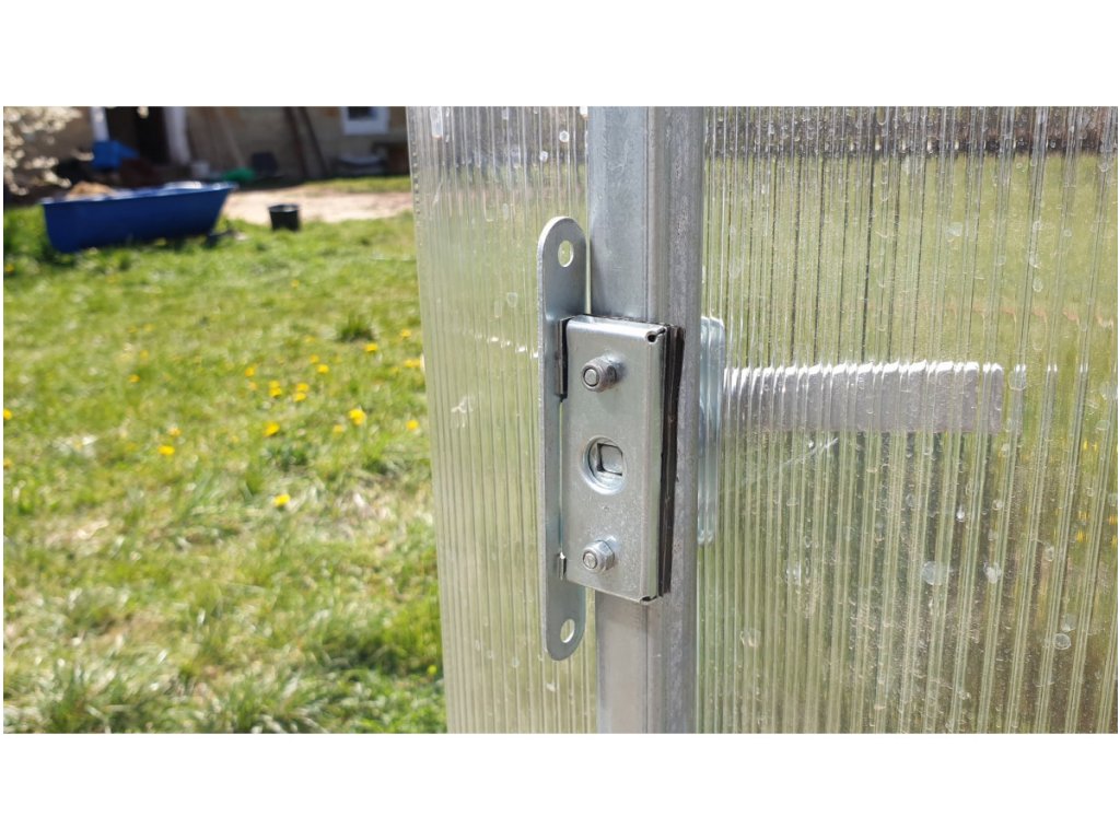 Zasklení skleníku je tvořeno čirým dutinkovým (komůrkovým) polykarbonátem o tloušťce 6 mm s UV ochranou, který má zvýšené tepelně izolační vlastnosti, oproti běžně prodávaným skleníkům. Polykarbonát splňuje veškeré podmínky zdravotní nezávadnosti.