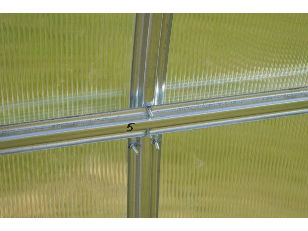 - pozor - u tohoto modelu skleníku je nutné desky pro přesný rozměr předního a zadního čela svépomocí vyřezat z dodaných polykarbonátových desek podle přiloženého návodu