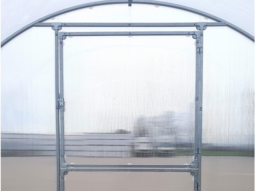 Skleník má jedny čelní dveře a dvě ventilační okénka. Skleník můžete navíc doplnit o tvárnice Guttagarden z kterých můžete uprostřed skleníku vytvořit cestičku.