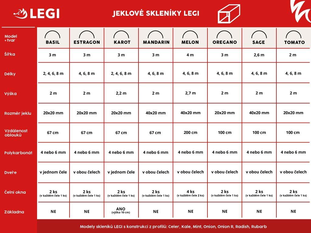 - Nabídku skleníků LEGI s jeklovou pozinkovanou konstrukcí, včetně oblíbených skleníků OREGANO, ESTRAGON, TOMATO a dalších