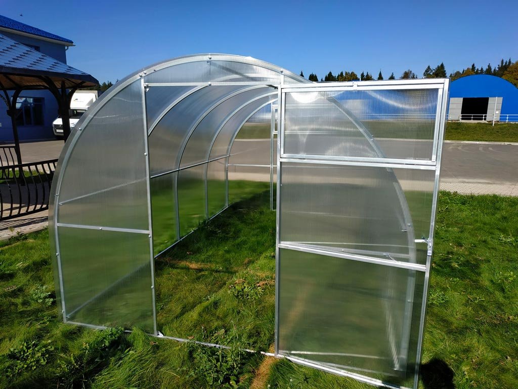 Každá zásilka se skládá z krabice s materiálem, balení profilů, balení čel skleníku a příslušného počtu polykarbonátových desek o rozměru 6 x 2,1 m. Jedna deska je vždy použita pro nařezání čelních dílů (pokud nemáte zakoupenou předmontáž polykarbonátu), další desky se neřežou – jsou určeny k zakrytí oblouků. Na každé 2 metry délky skleníku je dodána jedna uvedená deska.