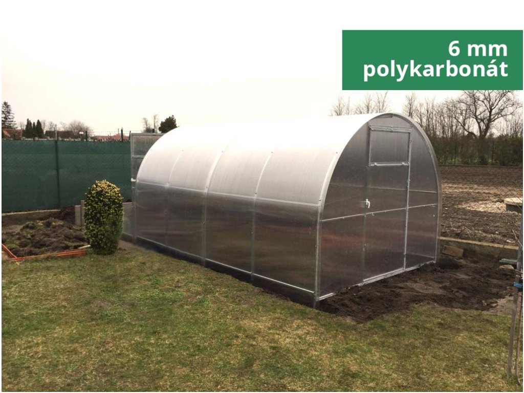 Zasklení skleníku je tvořeno čirým dutinkovým (komůrkovým) polykarbonátem o tloušťce 6 mm s UV ochranou, která zamezuje křehnutí materiálu a změně barvy. Polykarbonát je samozřejmě certifikovaný a splňuje veškeré podmínky zdravotní nezávadnosti.